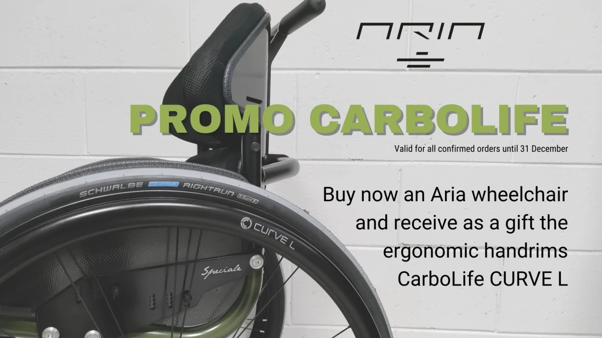 When you purchase an Aria wheelchair, you will receive complimentary Carbolife Curve L handrims.