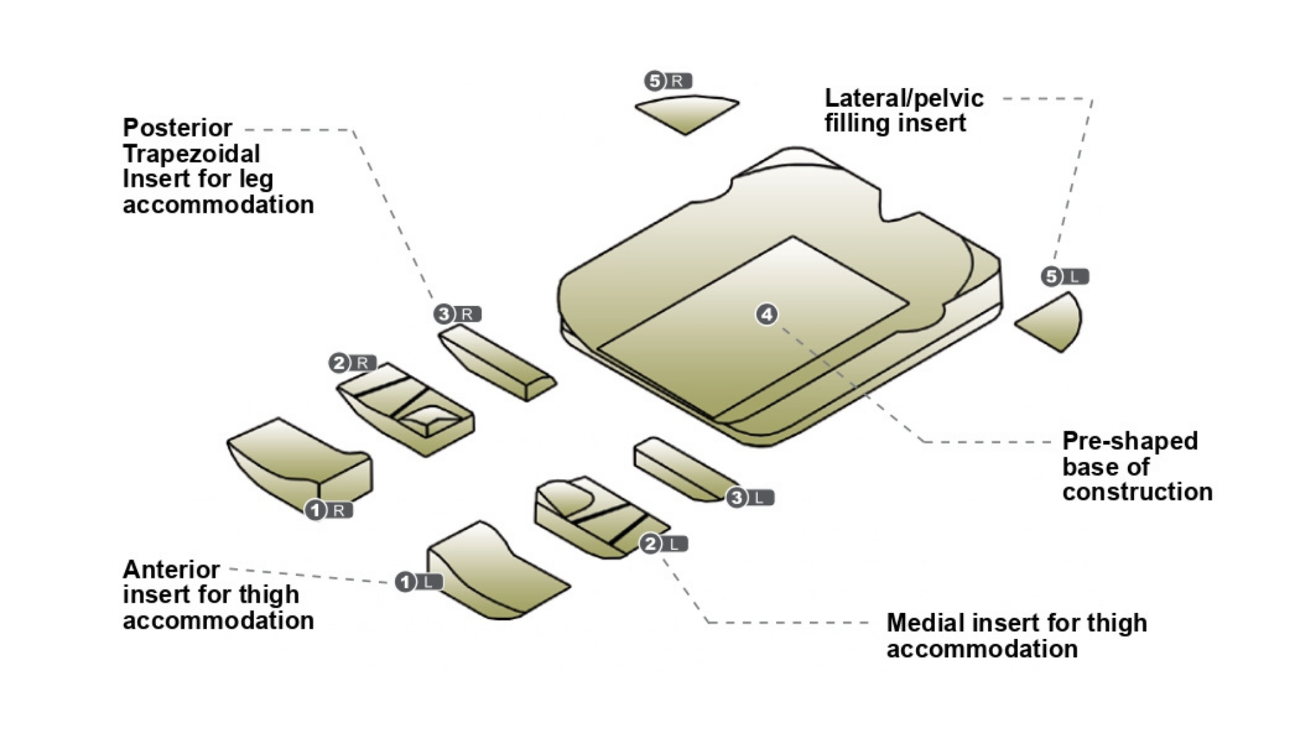 Each postural cushion in this line is designed to address a variety of pathologies, positioning needs, and specific goals. Each model is composed of independent pre-shaped elements that, when assembled, make the cushion suitable for every shape, size, and body morphology of a seated person.