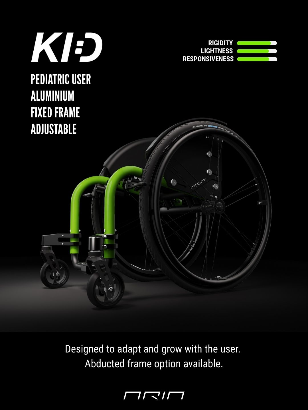 Aria KID: adaptability and performance for the little ones: Aria KID is our rigid frame wheelchair model specifically designed for pediatric anthropometric proportions (SW starting from 240 mm).