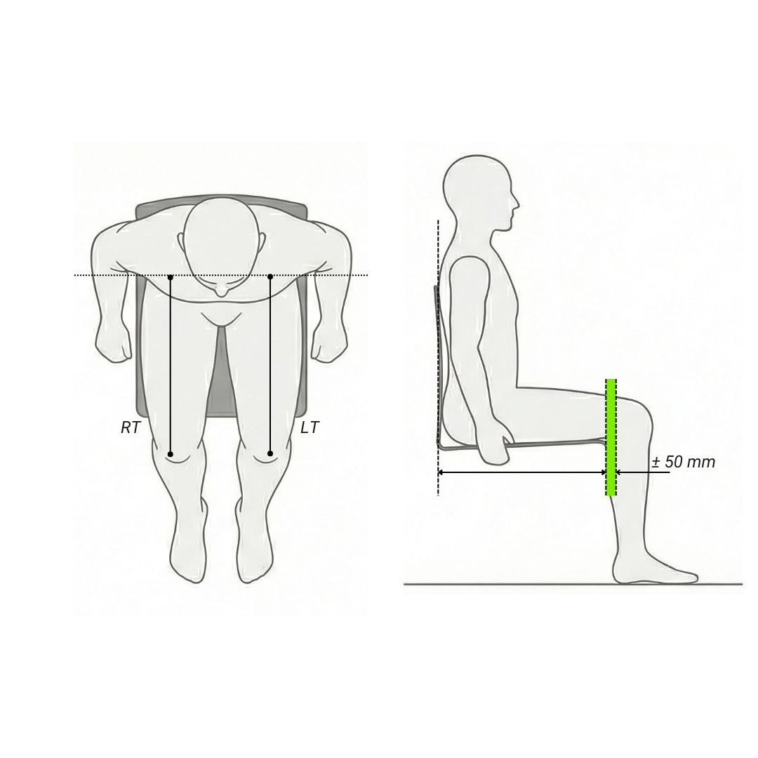 Positioning: All measurements must be taken with the user seated on a flat, rigid surface, simulating the desired final posture.