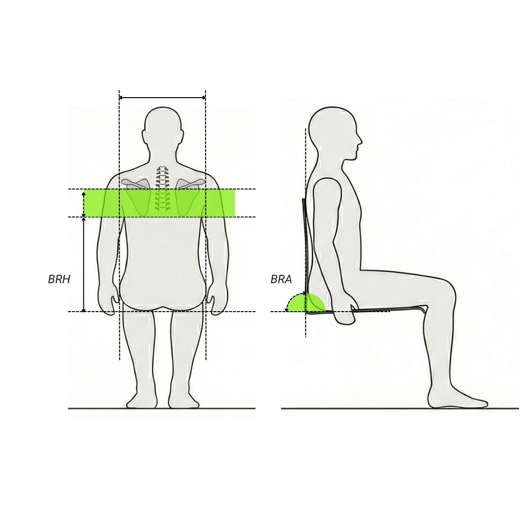 Backrest Angle (BRA): the angle between the seat and the backrest (BRA) has a profound impact on seating biomechanics.