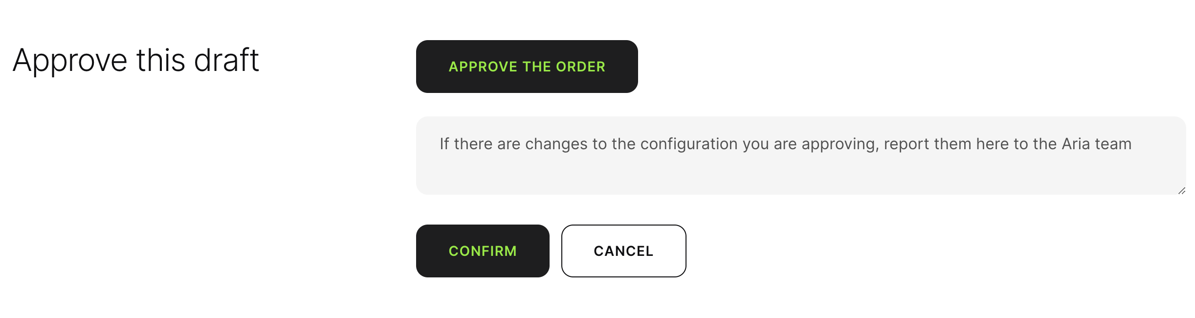 È possibile confermare una bozza e trasformarla in una richiesta ad Aria attraverso il bottone "Approva Ordine" presente nel riepilogo della configurazione.