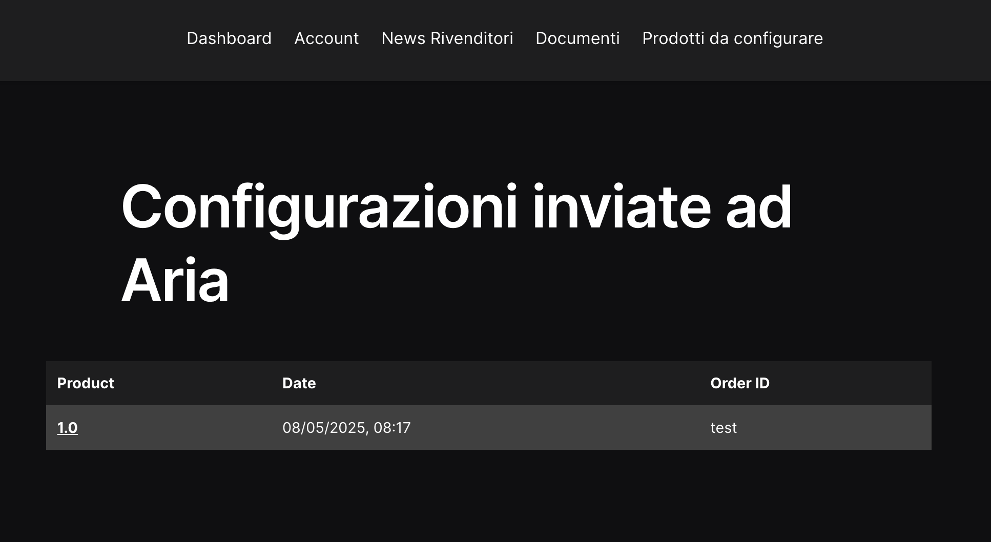 Configurazioni inviate ad Aria: troverai tutte le configurazioni inviate e quelle salvate in bozza;