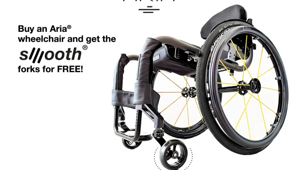 If you buy our Aria wheelchair before the end of 2020 we will include a free Smooth® suspension system.